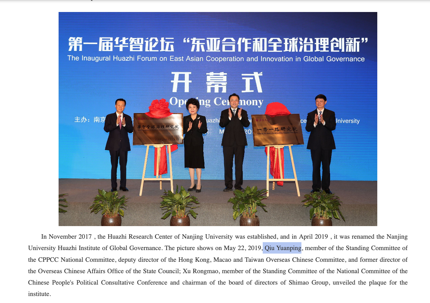 Huazhi was founded in 2017 with aspirations of becoming a high-end think tank. The joint effort by Nanjing University and the Overseas Chinese Affairs Office (OCAO) of Jiangsu Province is a CPC lapdog in disguise.